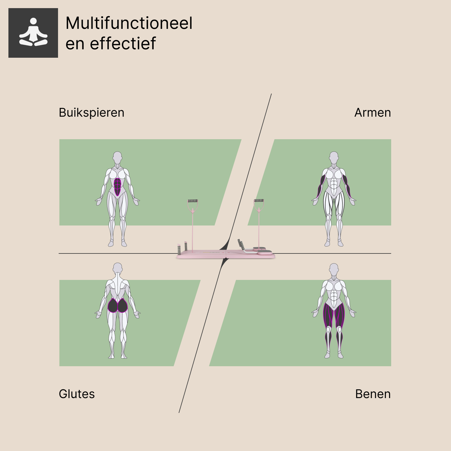 Das Pilates Board wurde in Zusammenarbeit mit Profis entwickelt, damit Sie sicher, effektiv und mit Spaß zu Hause trainieren können. Dank seines cleveren Designs trainieren Sie Kraft, Gleichgewicht und Flexibilität in einem nahtlosen Workout.